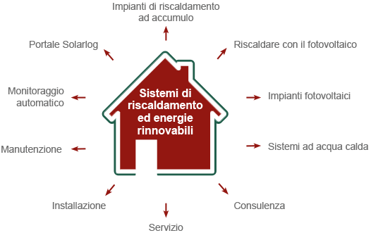 Riusciamo a garantire sistemi di riscaldamento efficienti, economici e a basso impatto ambientale e siamo in grado di installare impianti fotovoltaici creati su misura per voi. Ma il punto di forza della nostra offerta è la combinazione ottimale delle due tecnologie: riscaldare con il fotovoltaico. Lasciatevi conquistare dagli innumerevoli vantaggi di questa soluzione!
